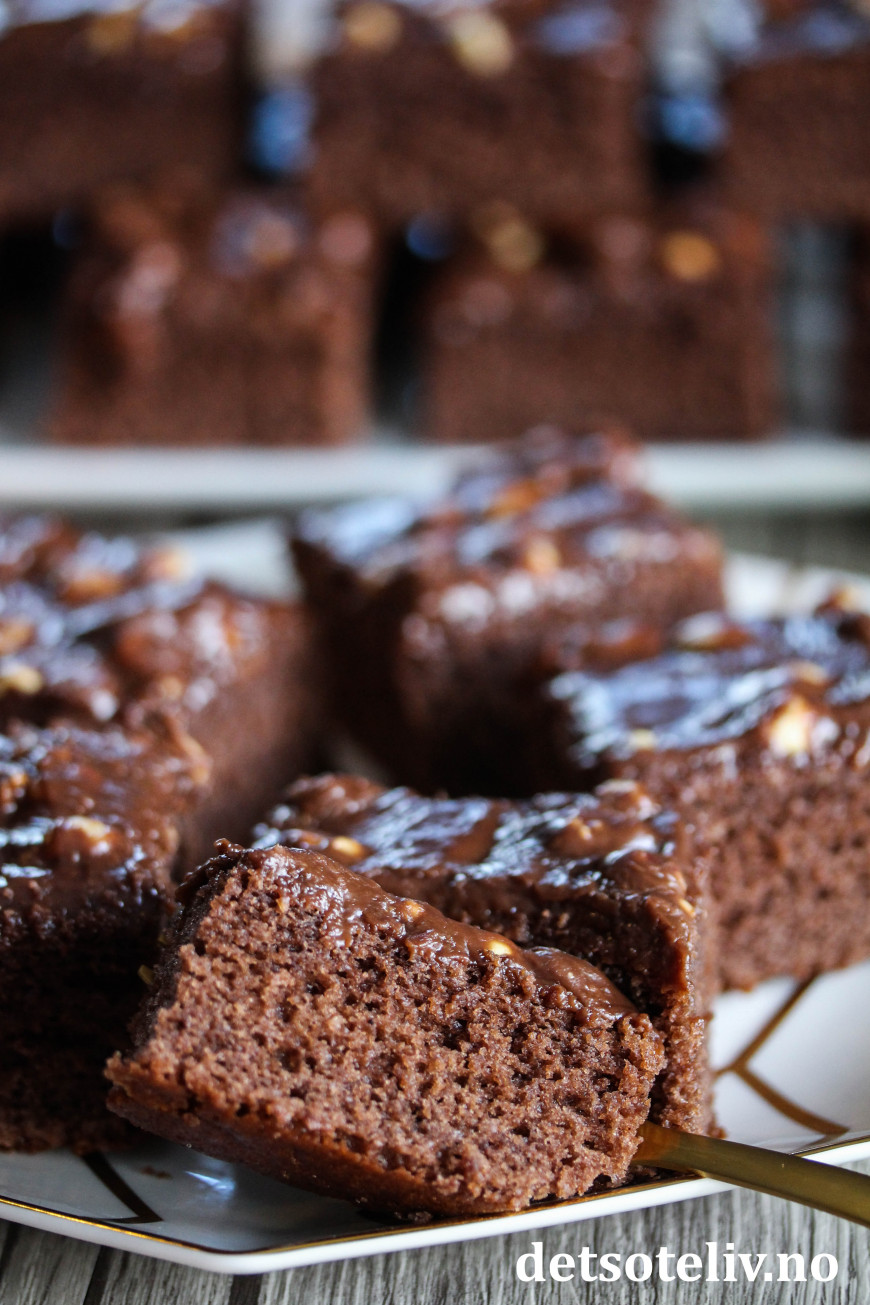 En stor, myk og deilig sjokoladekake i langpanne er aldri feil.