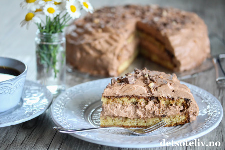 Kaken har mild smak av sjokolade og hasselnøtter.