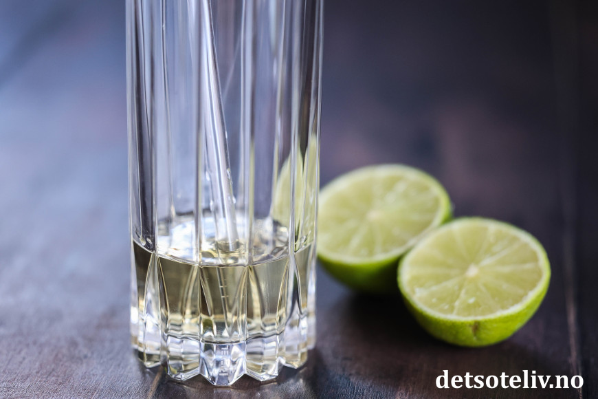♥ Limeskiver er klassisk pynt til til glasset, men noen liker å bruke litt granbar, en kvist einerbær, rips og blåbær eller annet som gir assosiasjoner til natur.