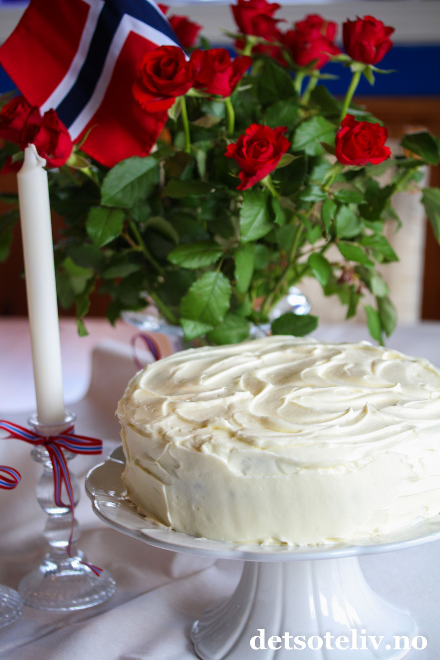 ♥ Kaken kan fint lages dagen før servering. Oppbevar da kaken kjølig over natten. Siden kremen ikke innholder kremfløte, tåler kaken fint å stå i romtemperatur i flere timer, som jo kan være praktisk på 17. mai.