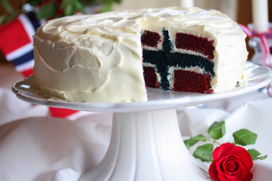 Når du skjærer opp kaken, åpenbarer det seg et norsk flagg!