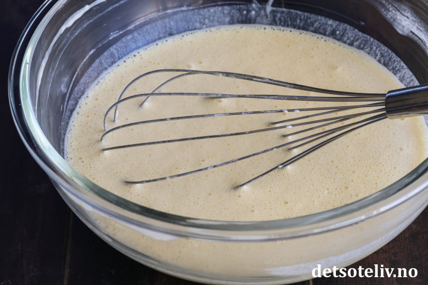 ♥ For å få en klumpfri pannekakerøre, er det lurt å følge fremgangsmåten jeg har beskrevet, altså å gradvis røre det flytende inn i melblandingen og røre med en ballongvisp.