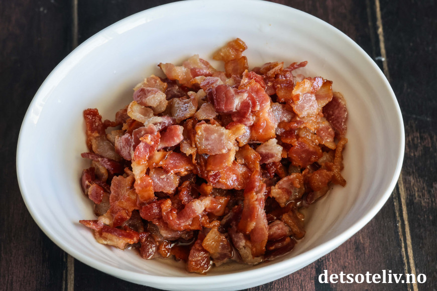 Sett baconbitene til side i en skål.