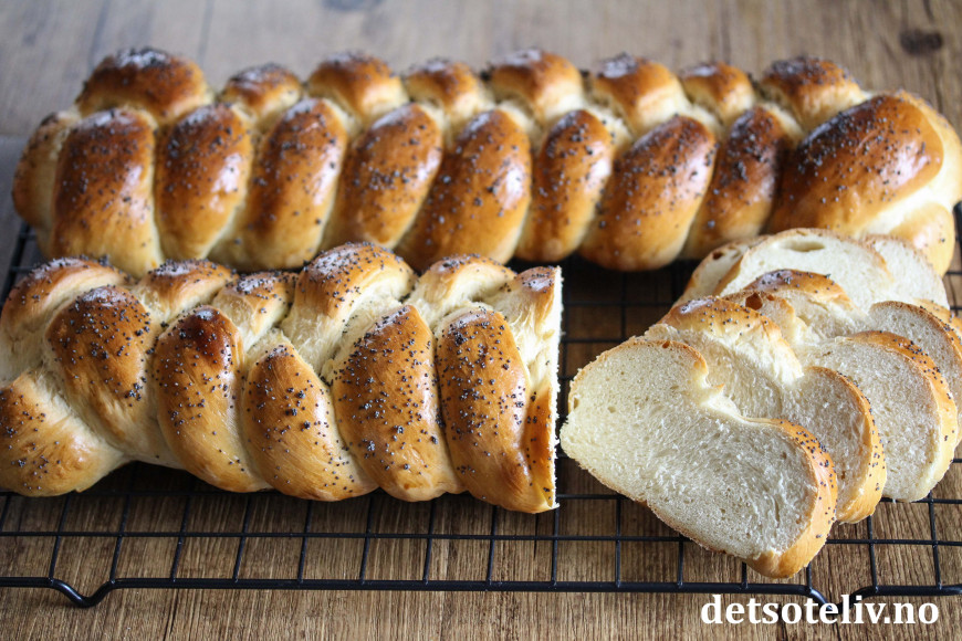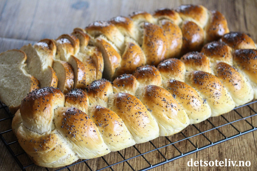 Tusen takk for utrolig mange flotte oppskrifter med mye matglede og inspirasjon som jeg støtt og stadig prøver meg på! Kjøkkensysler er blant mine hyggeligste sysler innen alle kategorier :) Det jeg verdsetter og setter utrolig stor pris på med din blogg, er at du tar deg tid til å sette ord på fremgangsmåten og ikke henviser til bilder for å se denne, som f.eks. hvordan denne fletteloffen skulle bli flettet - det er ikke alle av oss som er i stand til å se de bildene.