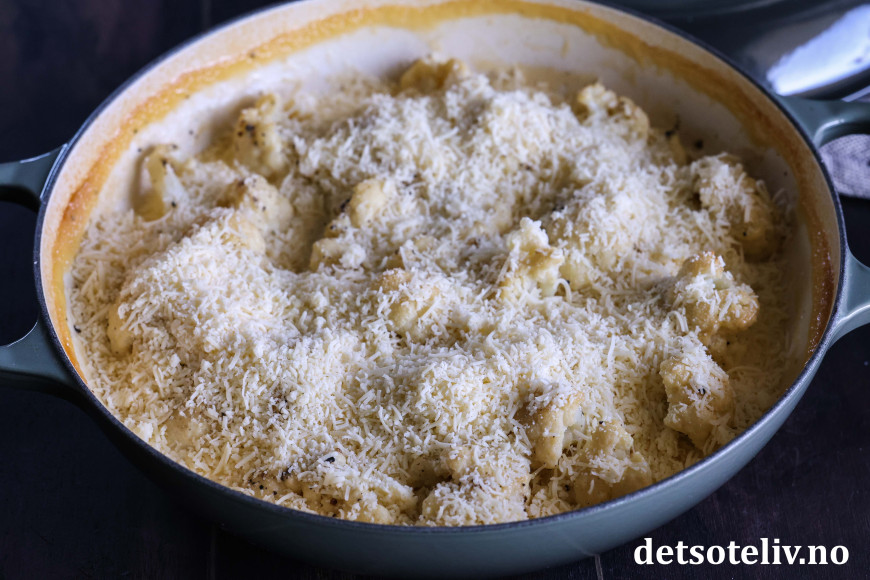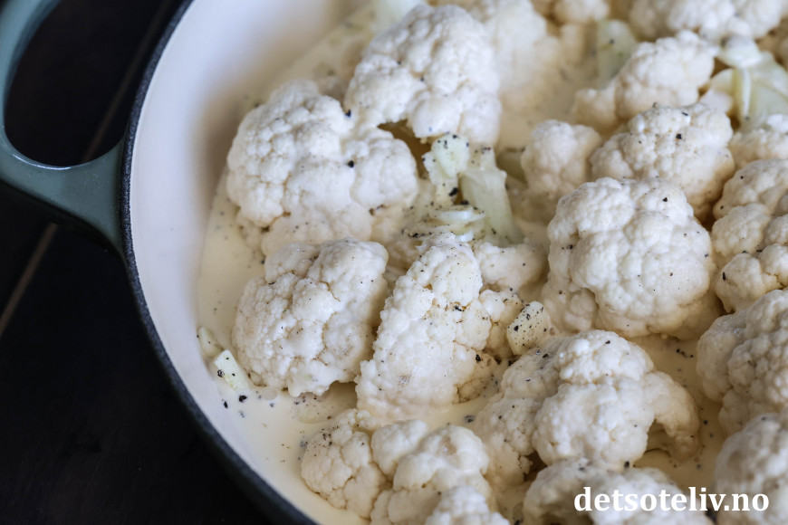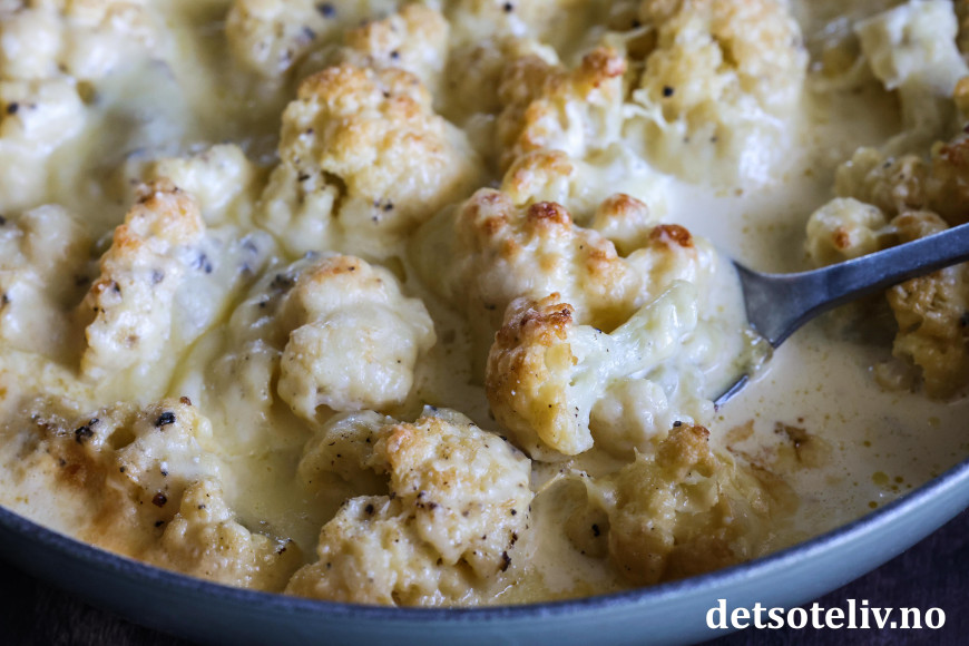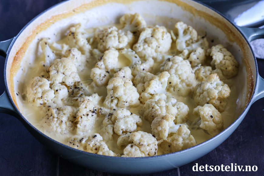 Blomkålen blir supermyk, kremete, smakfull og rykende varm.