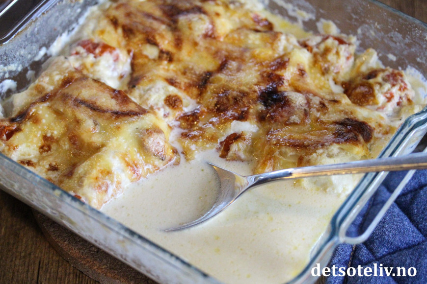 ♥ Den gode smaken på denne fiskeretten skyldes i stor grad hvitløken i fløtesausen, så ikke vær sparsom med den. Det hender at jeg bruker mer enn 5 fedd. 😊
