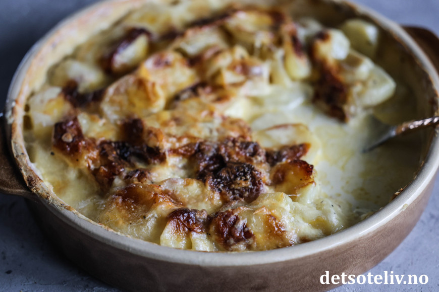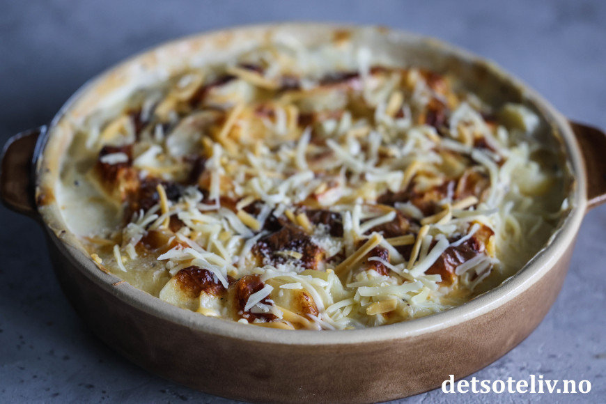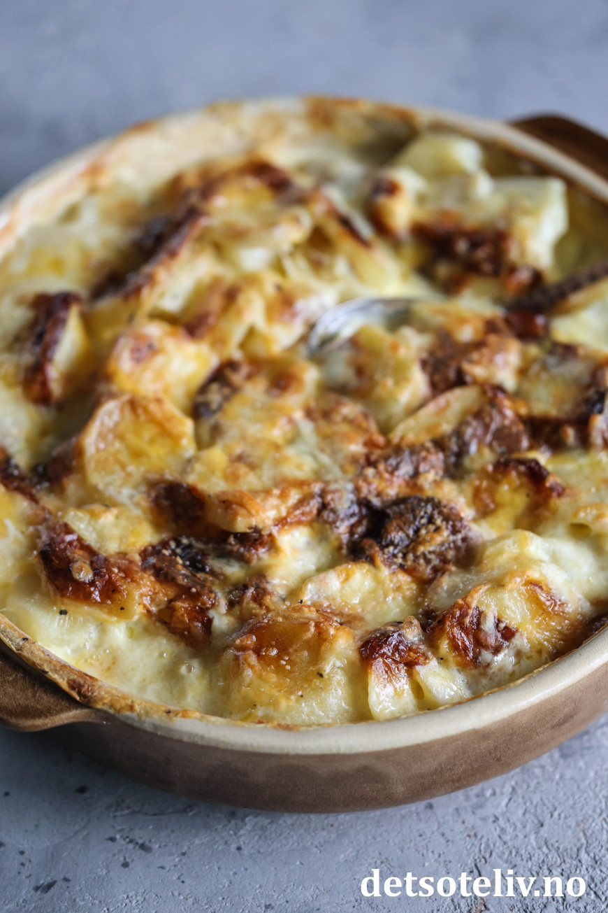 Fløtegratinerte poteter er så utrolig godt, særlig med masse hvitløk og ost!