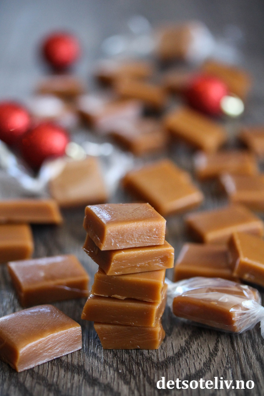 Disse karamellene smelter i munnen og er så gode at man lett blir hekta. Perfekte å sette frem i godteskålen eller å gi bort som spiselig julegave!