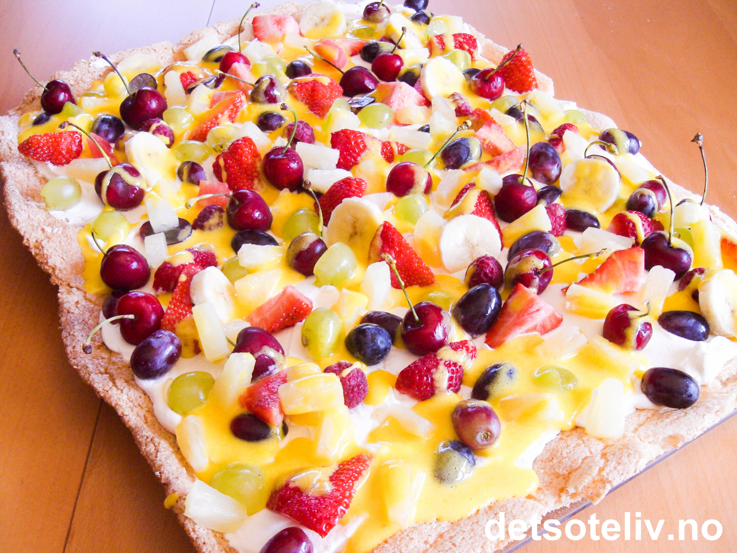 Andre forslag til pynt er alle slags bær, hermetisk frukt, kiwibiter, druer, moreller, bananskiver, etc.