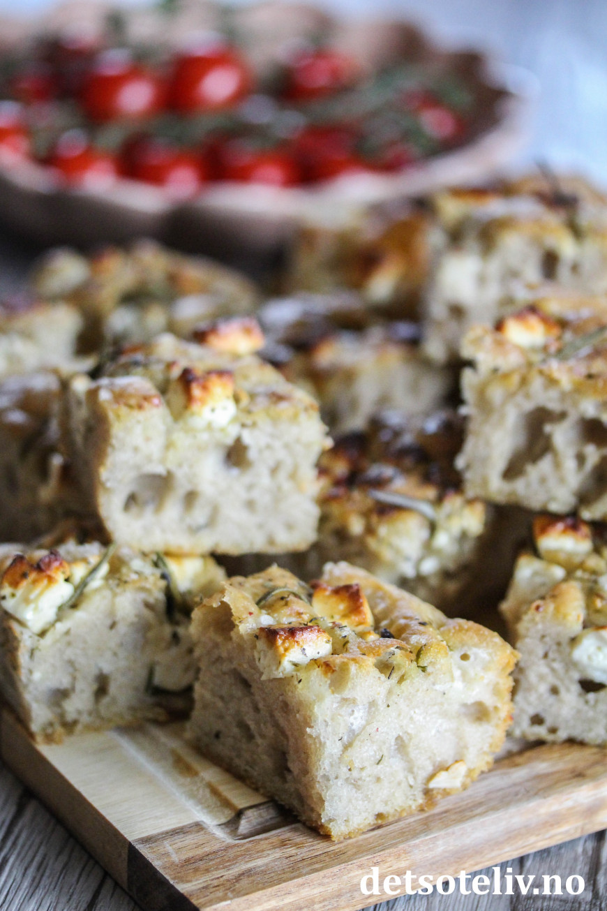 ♥ Focaccia smaker aller best nystekt. Får du rester, kan de gjerne legges i fryseren. Ellers går det også an å oppbevare biter av focaccia i noen dager innpakket i plast.