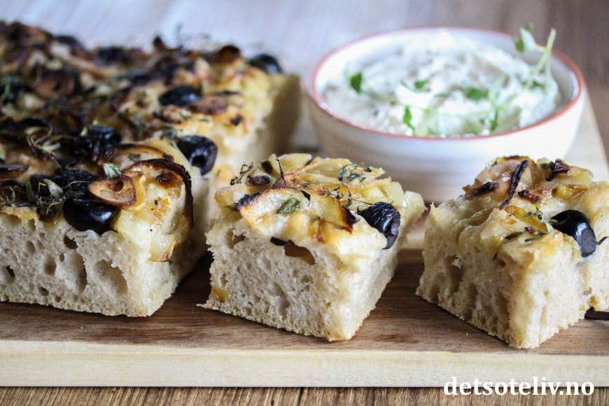 Denne focacciaen er fantastisk herlig tilbehør til grill og lignende sommermiddager!