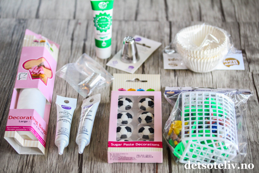 ♥ For at muffinsene skal holde fasongen bør du bruke muffinsbrett. Jeg synes hvite muffinsformer matcher best fargemessig til disse fotballmuffinsene.