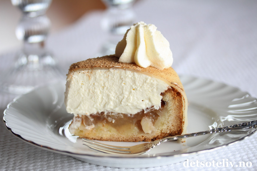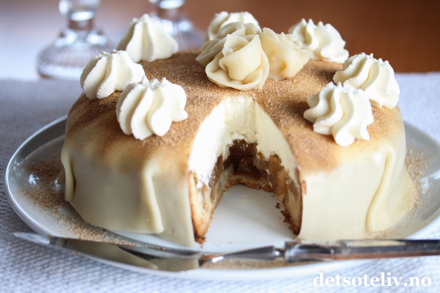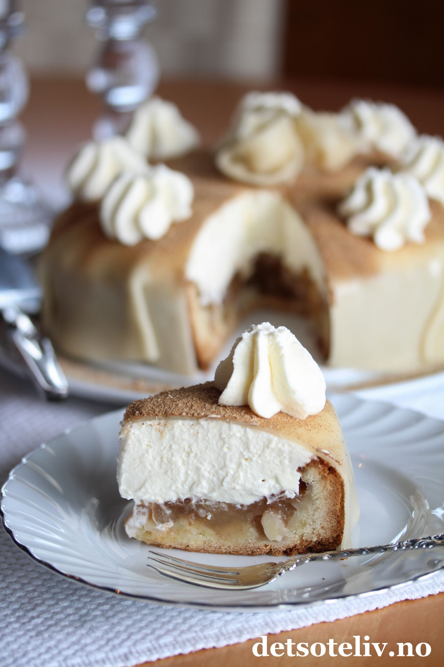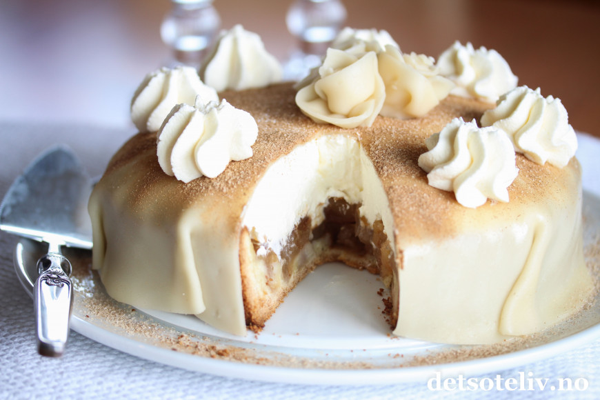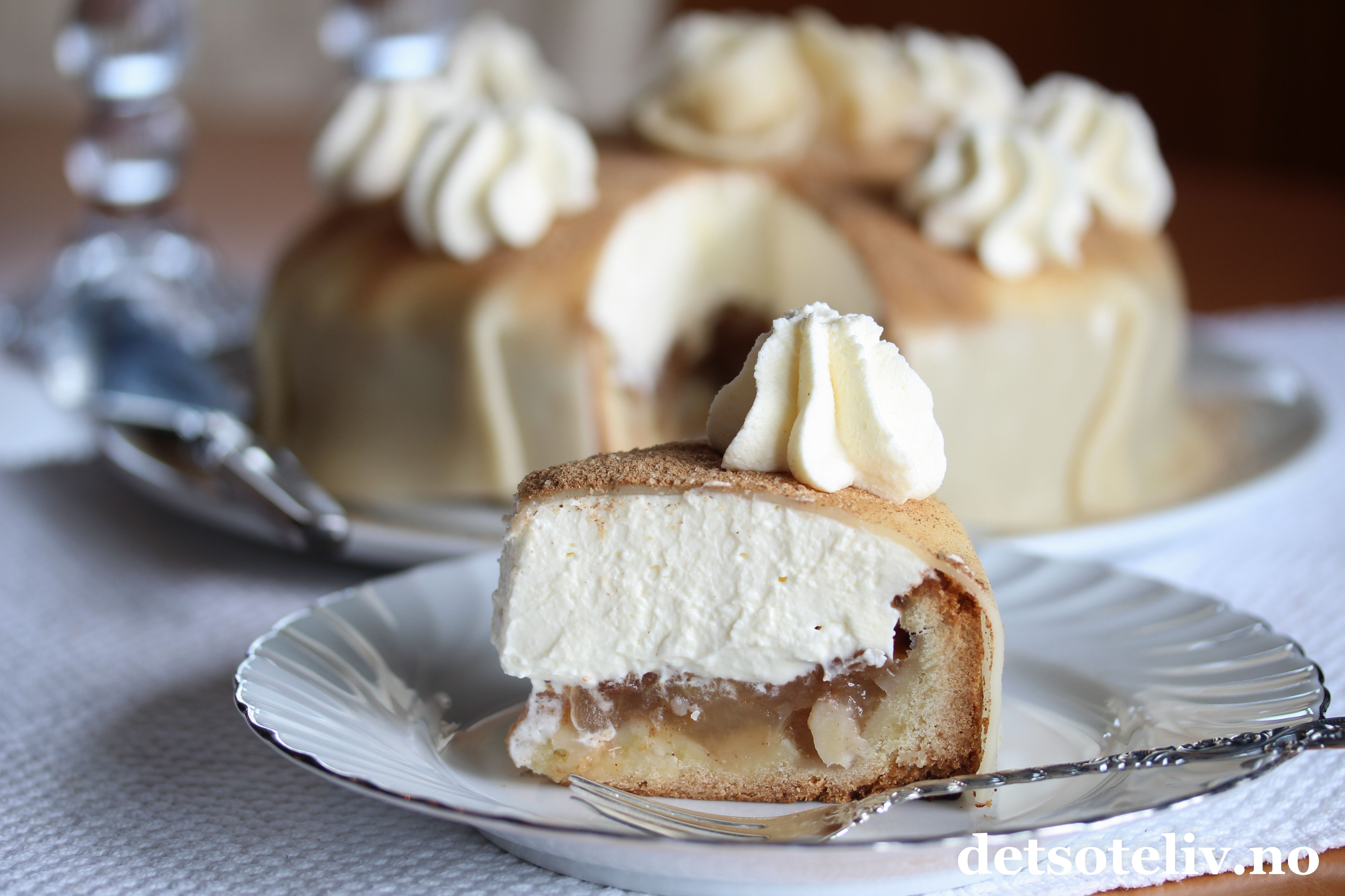 Kaken består av mørdeig, epler og eplemos, mye kanel og sukker, pisket fløtekrem og marsipanlokk. Til forskjell fra de fleste vanlige eplekakene, skal denne serveres helt kald!