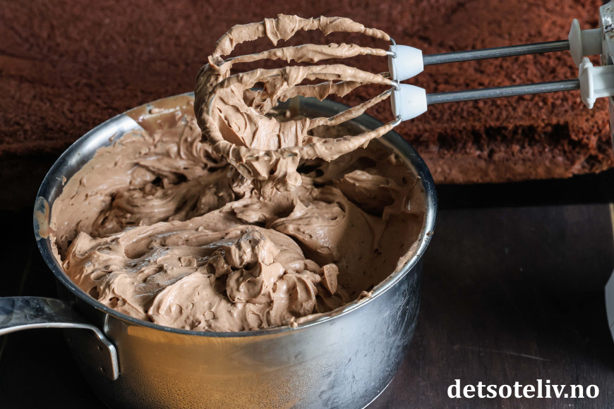 Pisk opp sjokoladefløten til du får en lys og luftig sjokoladekrem.