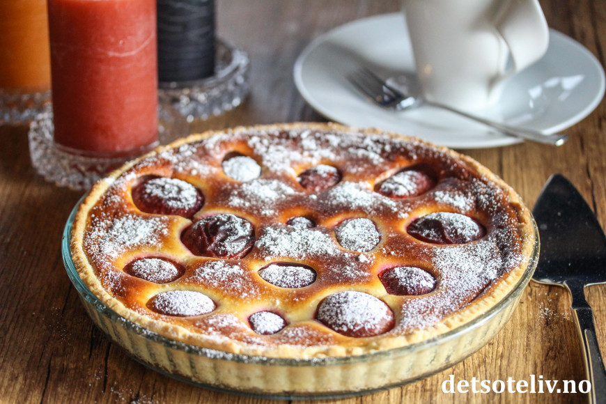 Her har du en kjempelekker og spennende, fransk plommepai med et kremete fyll laget med blant annet crème fraîche og mandelmasse!