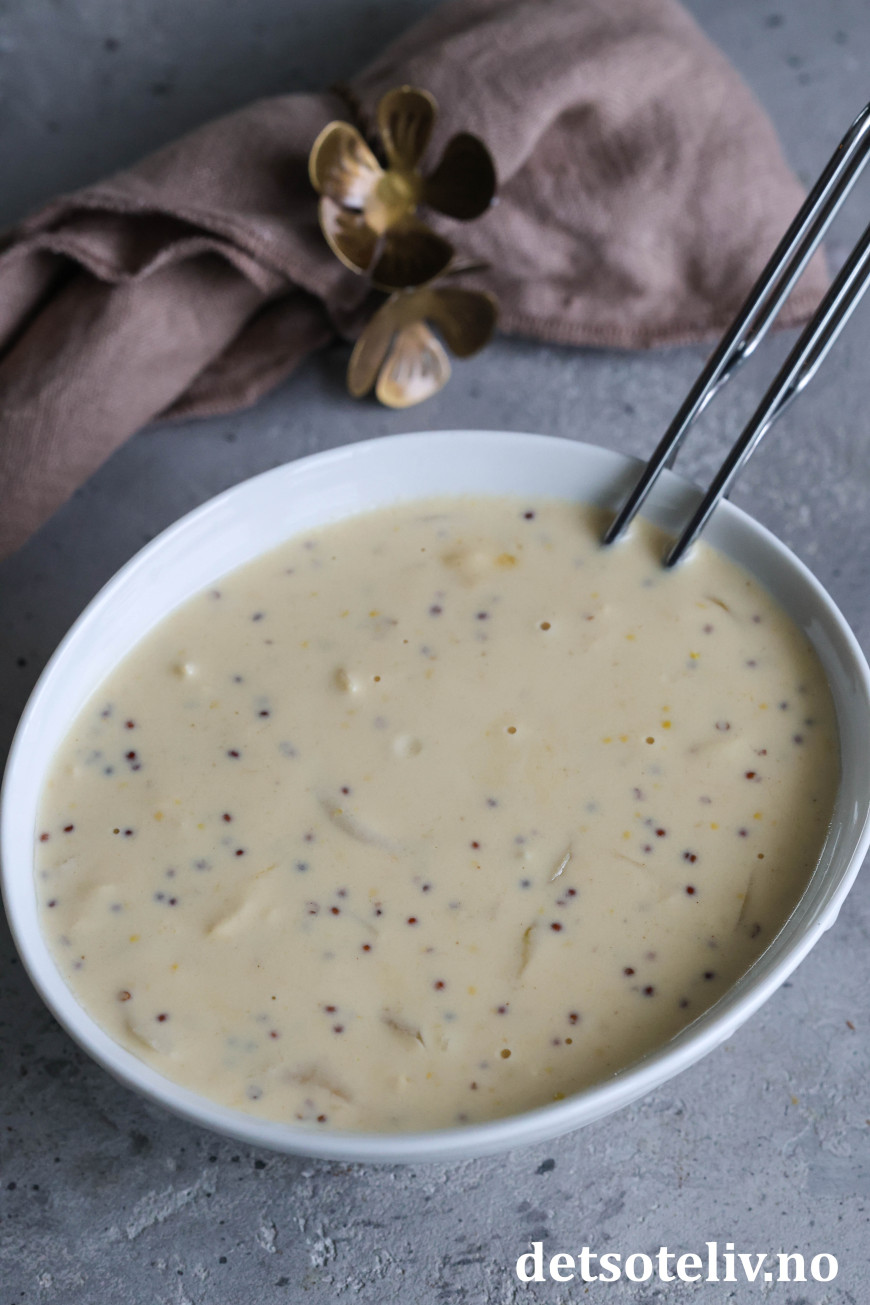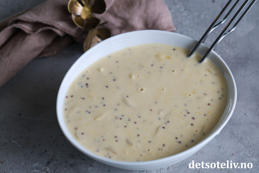 ♥ Bruk sennep av god kvalitet, det har en del å si for smaken.