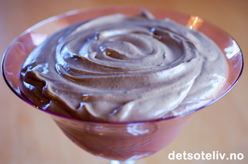 Se også oppskrift på "vanlig" sjokolademousse her på Det søte liv, som inneholder både eggeplommer og eggehviter, noe som gjør moussen litt lettere og mindre mektig.