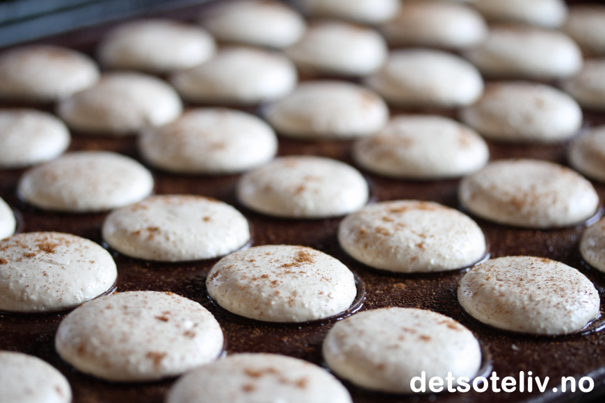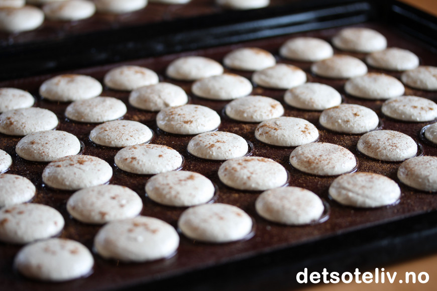 La så makronene stå i romtemperatur og tørke før steking i 20-30 min.