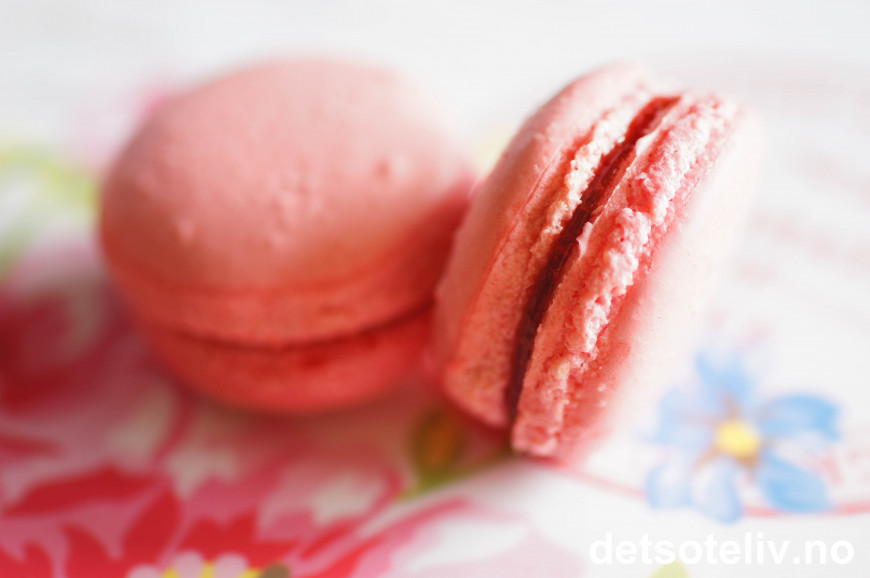 ♥ Flere nyttige tips finner du i grunnoppskriften på "Franske makroner (Macarons)" på www.detsoteliv.no.
