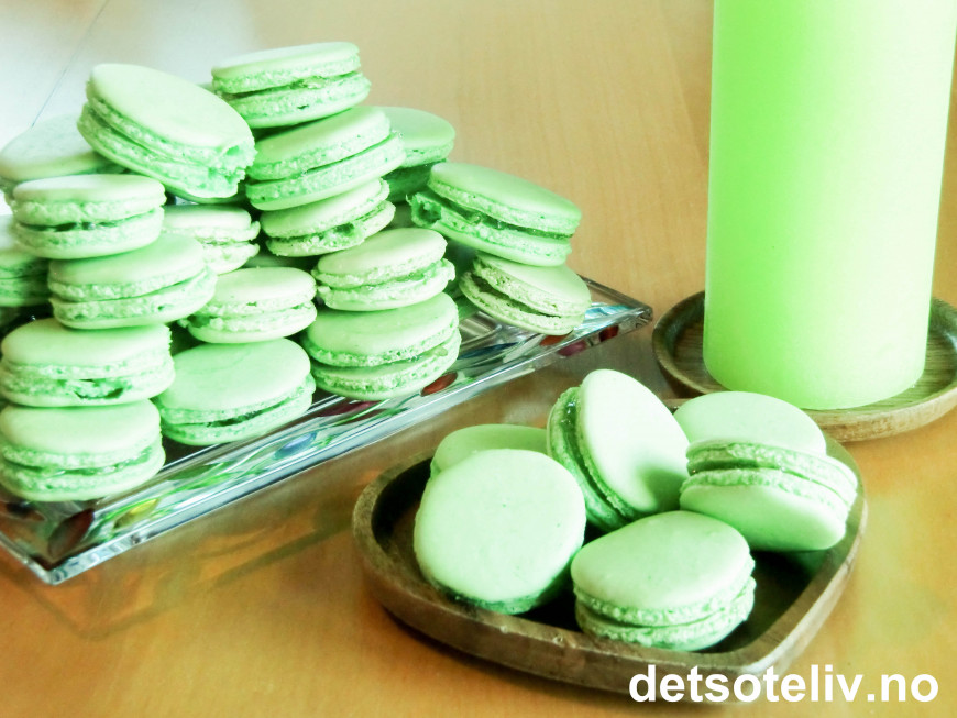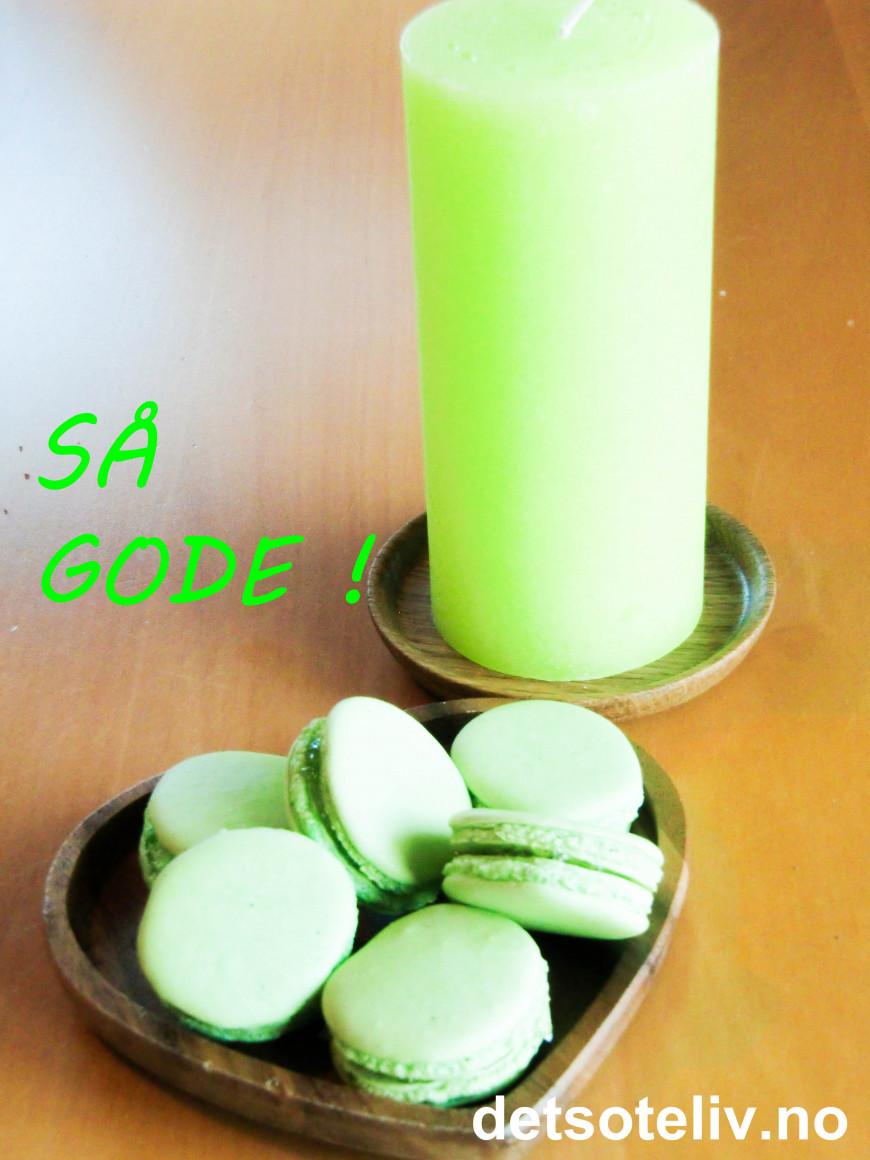 Perfekt kombinasjon av søtt og syrlig! Dette er franske makroner farget grønne og fylt med lime-marmelade.