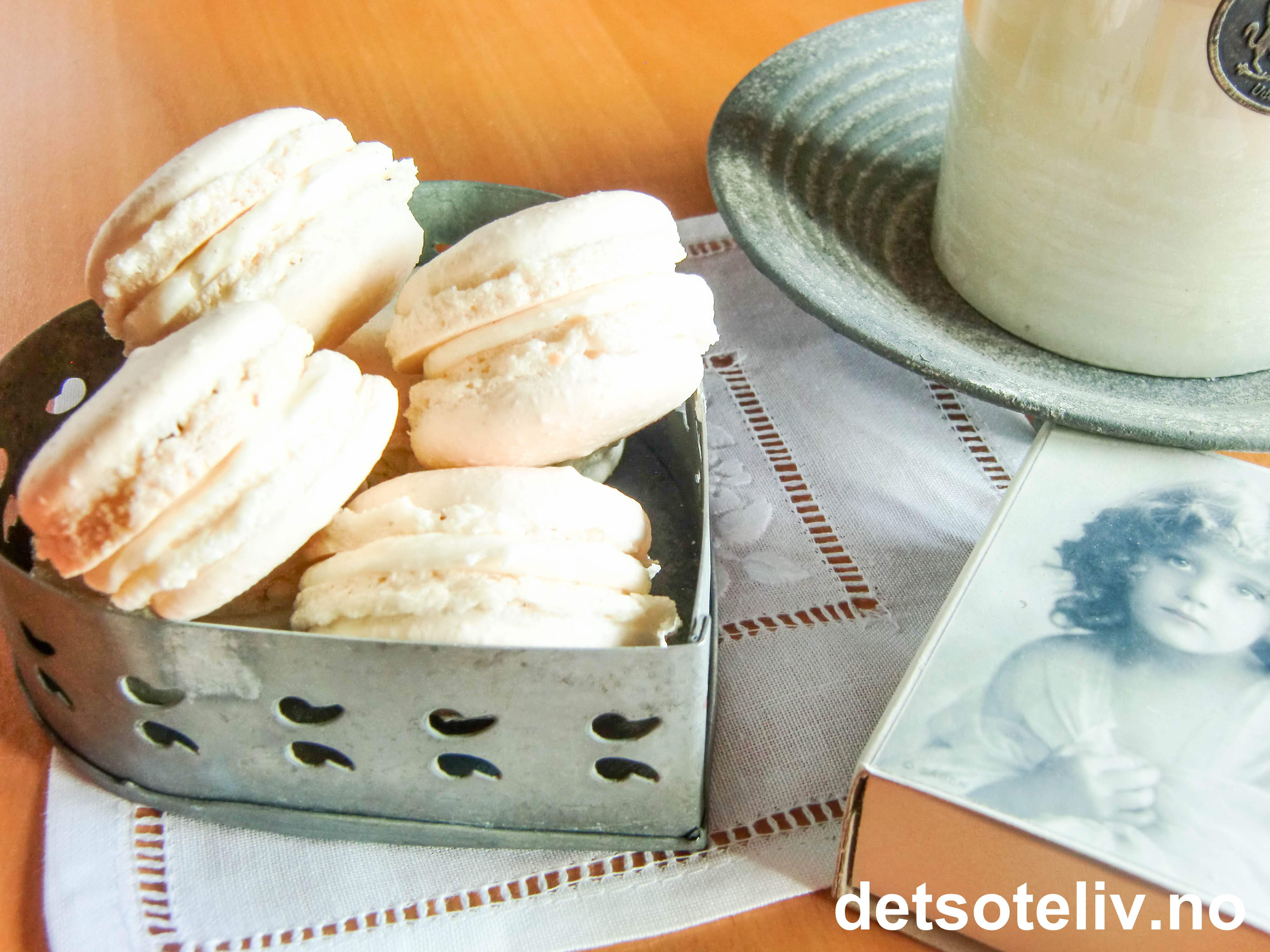Her har du delikate "Vanilla Macarons" i vakker, hvit, vintage-inspirert stil.