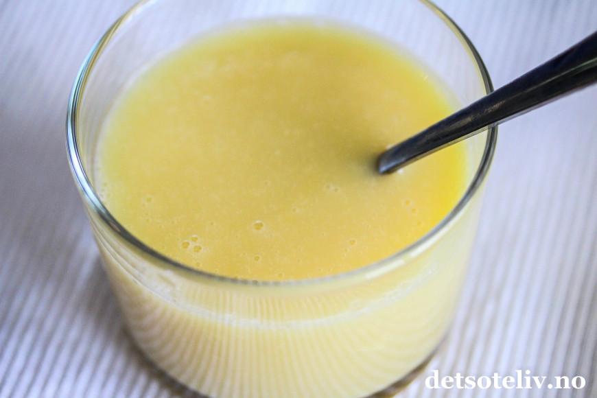 Visp eggene sammen med melk, smeltet smør, sukker og vaniljesukker. Sikt inn hvetemelet og rør deigen jevn. Press pannekakerøren gjennom en sikt slik at alle melklumper fjernes.