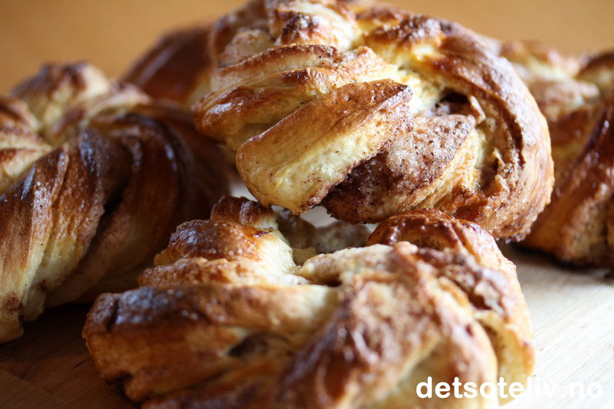 ♥ Se også oppskrift på Franske kanelboller, som er basert på samme gjærdeig, men med kanelfyll i stedet for vaniljefyll.