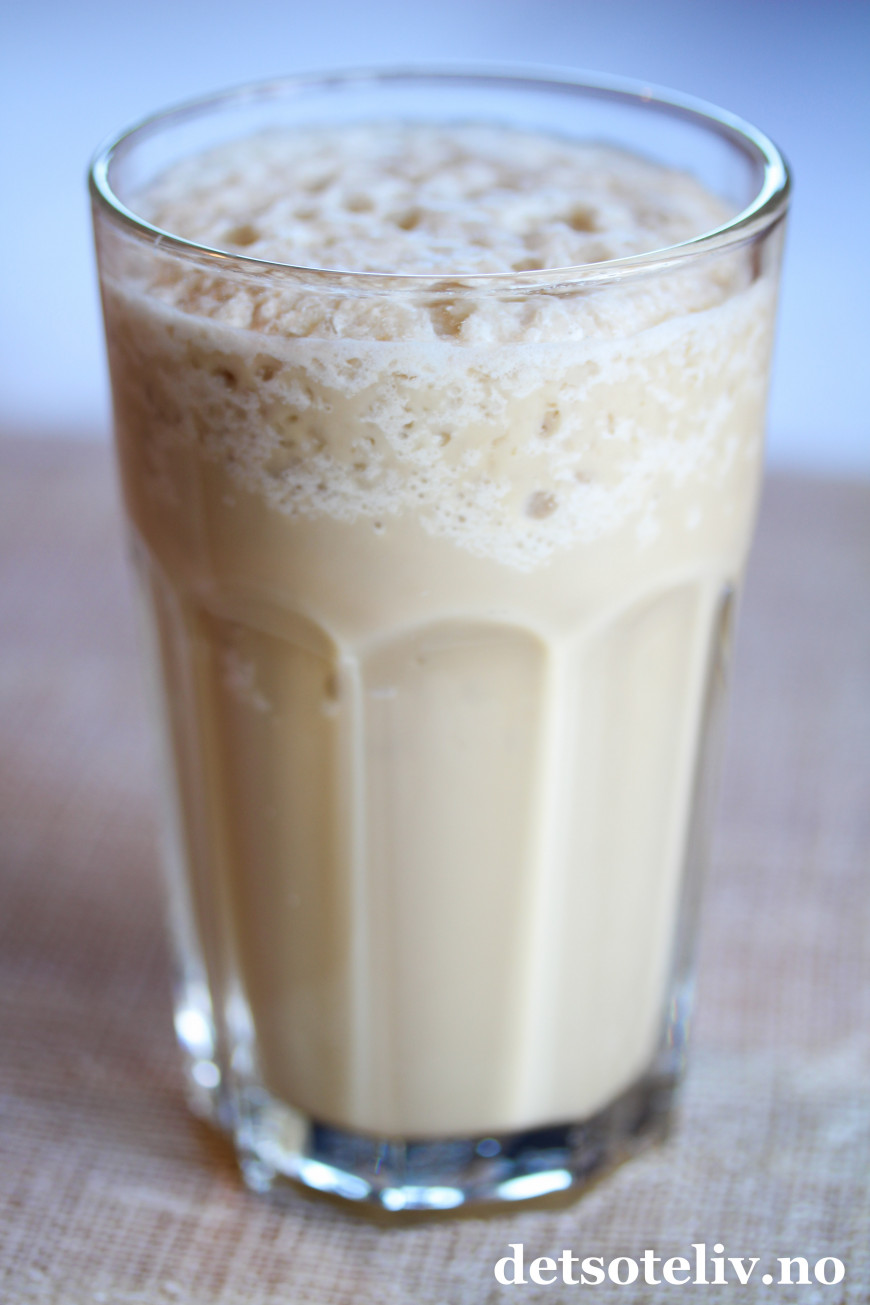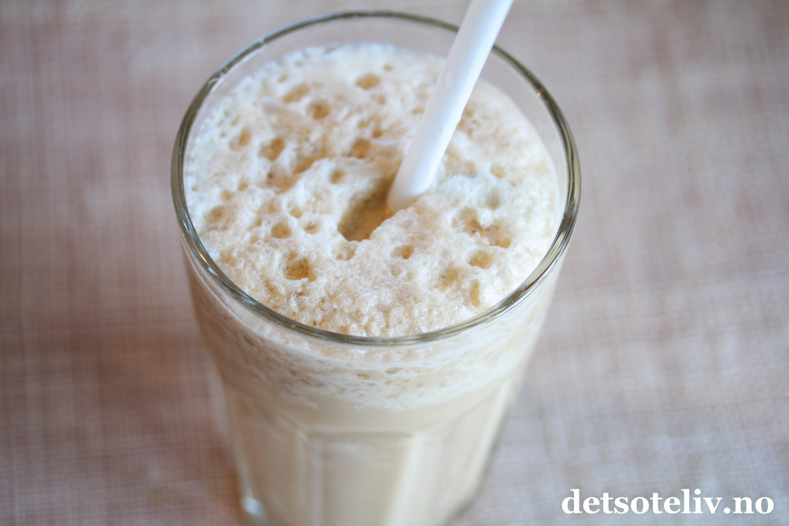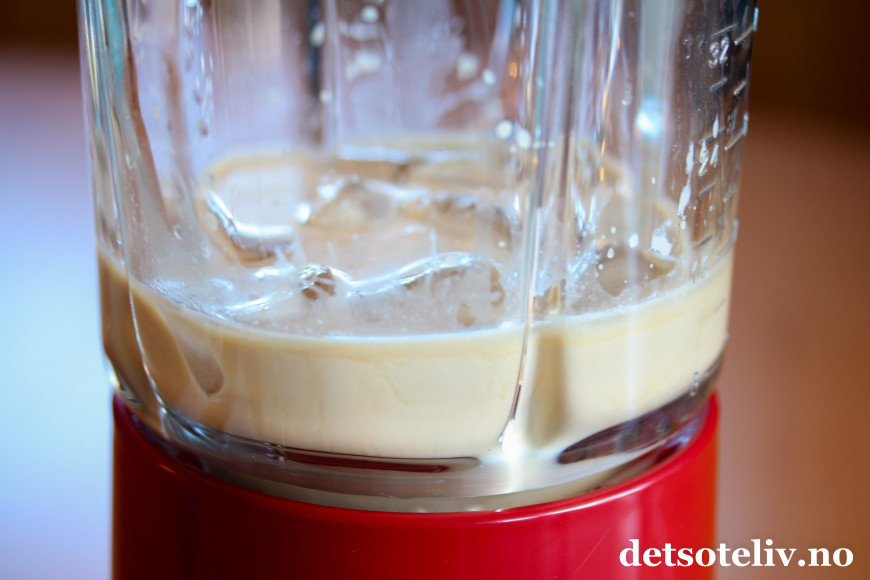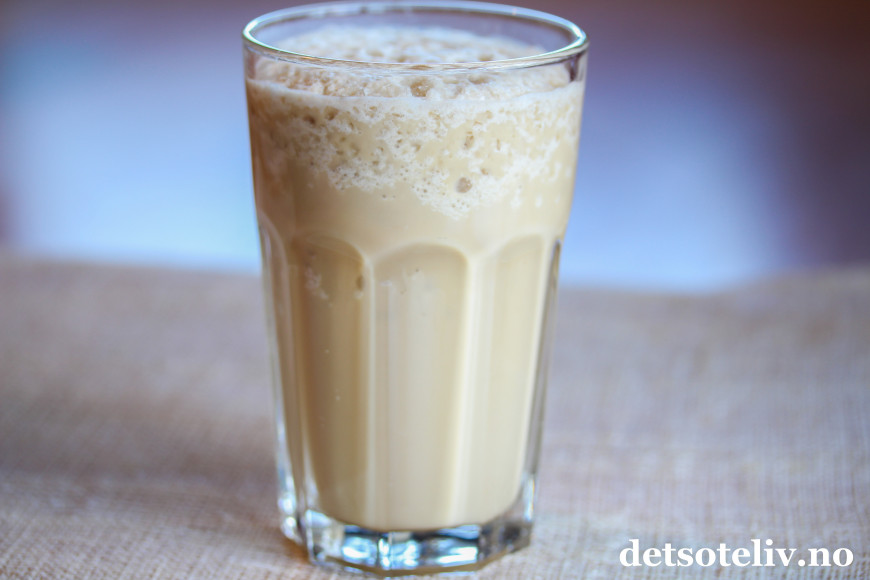♥ Merk at iskaffen blir fyldigere og får tykkere melkeskum om du bruker helmelk, men det går også veldig fint å lage Frappuccino med lettmelk eller skummet melk. På grunn av den finknuste isen blir iskaffen tykk likevel.