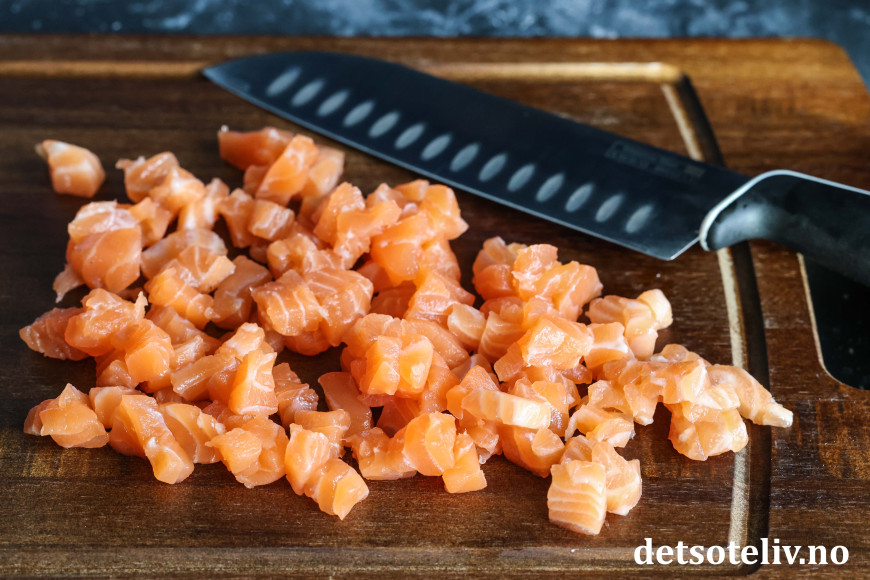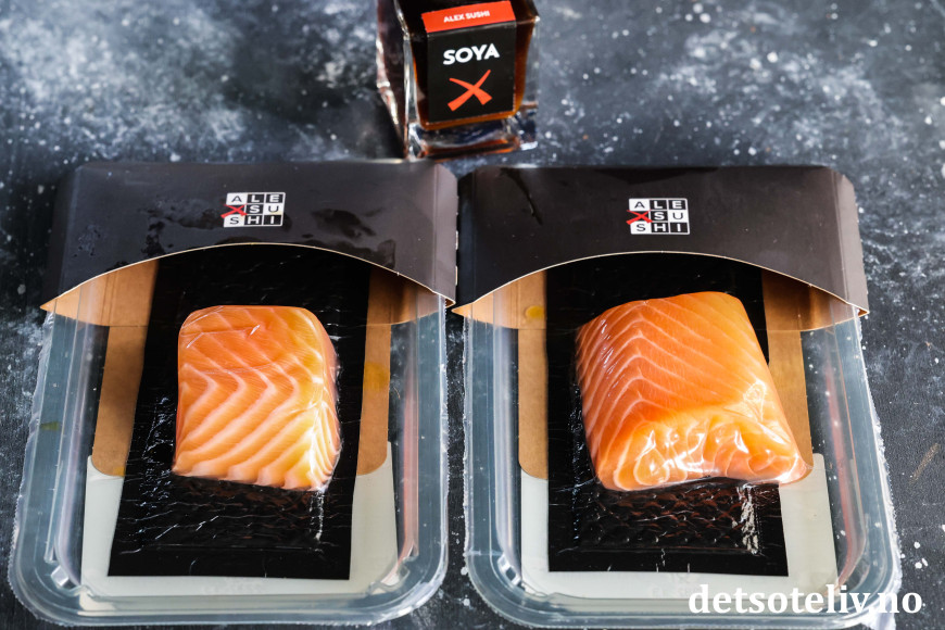 ♥ Jeg bruker her ren ryggfilet av laks (back loin), som har veldig god kvalitet (sashimikvalitet).