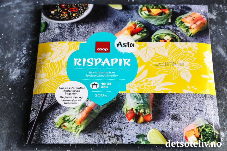 ♥ Rispapir fås kjøpt i de fleste store matbutikkene. Det samme gjelder de øvrige ingrediensene. Kjøp rispapir som er beregnet på vietnamesiske vårruller (dvs. "ferske" vårruller som ikke skal frityrstekes).