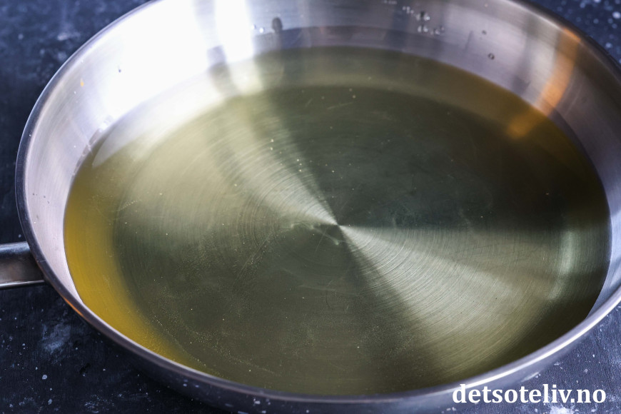 ♥ Det er viktig at du bruker en olje til frityrstekingen som er helt nøytral på smak, slik som solsikkeolje eller rapsolje.