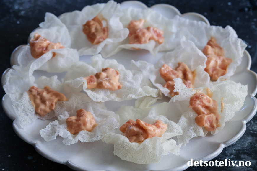 Fritert rispapir (Rice Paper Puffs) som toppes med en spicy lakserøre er en trendy smårett, som virkelig har slått an i sosiale medier!