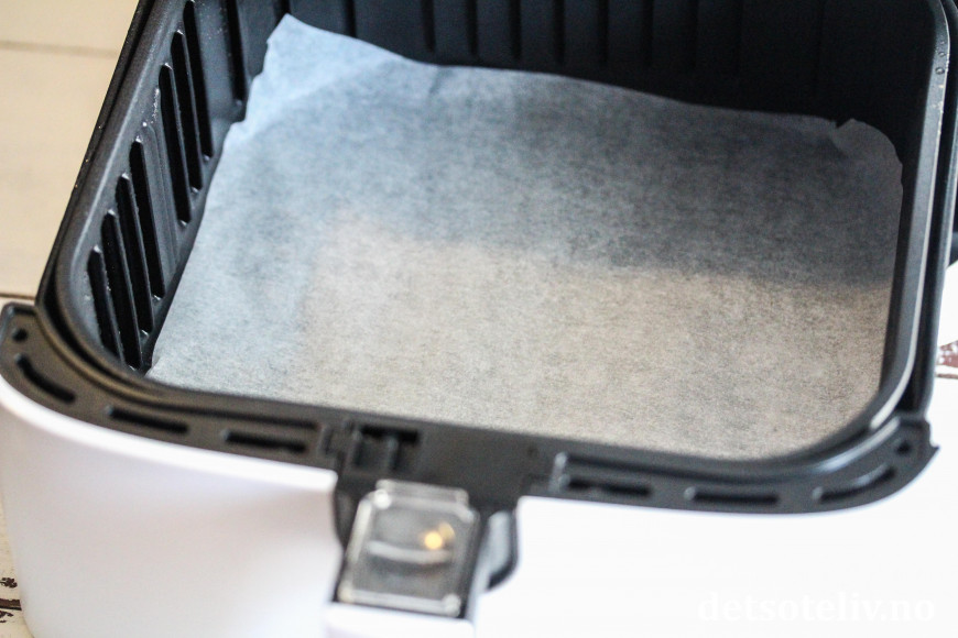 Forvarm airfryeren. Klipp til et stykke bakepapir som legges i bunnen av kurven. Plasser deretter inn rundstykkene (til Cosori airfryer er det perfekt plass til 9 rundstykker).