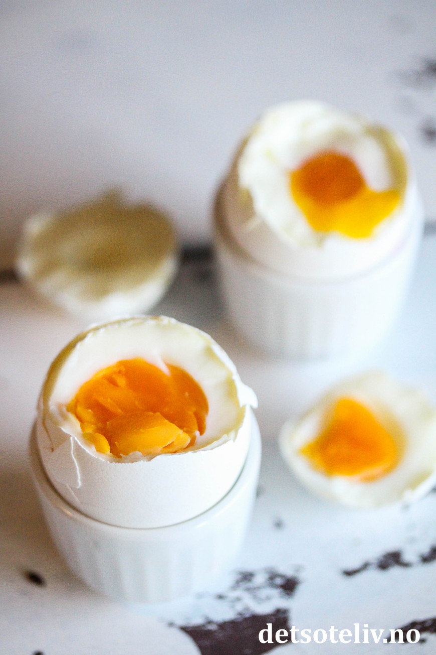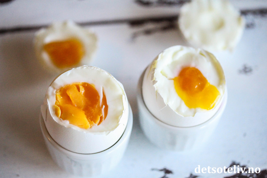 Jeg liker eggeplommen bløt, men ikke rennende. … Smilende egg, som det heter. 😊