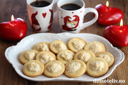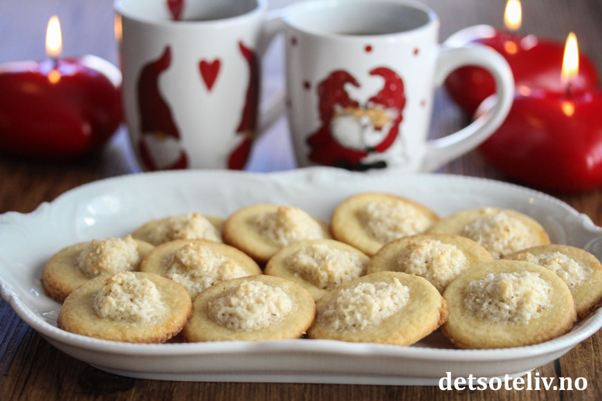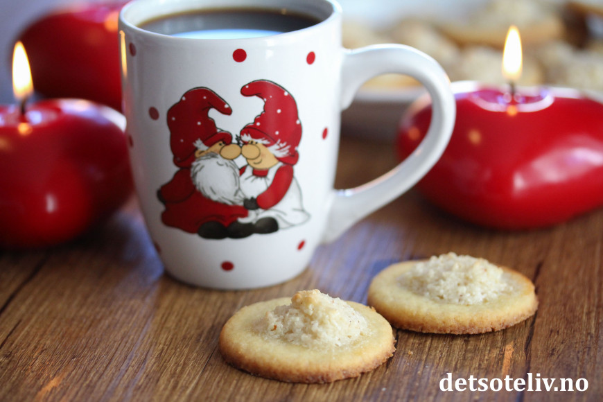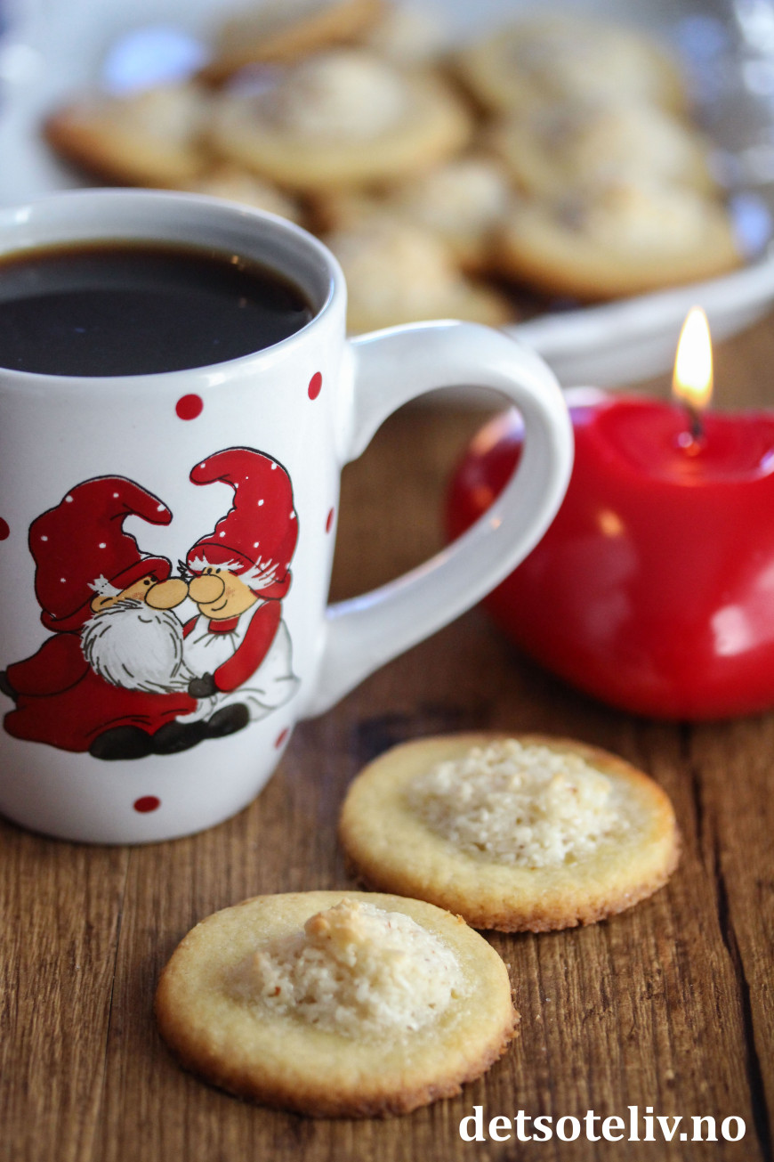 Fru Aals kaker er gammeldagse, norske julekaker som består av små, runde mørdeigsbunner som dekkes med en klatt deilig, hjemmelaget mandelmasse.