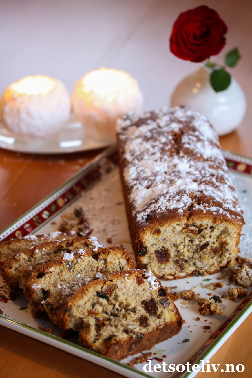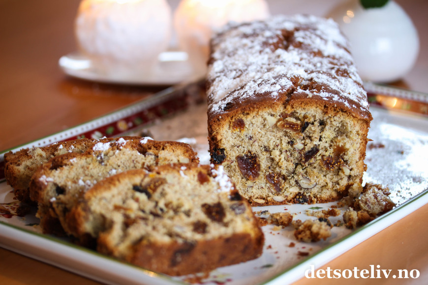 Dette er en kjempesaftig og myk fruktkake, fullstappet av tørket frukt, nøtter og krydder.