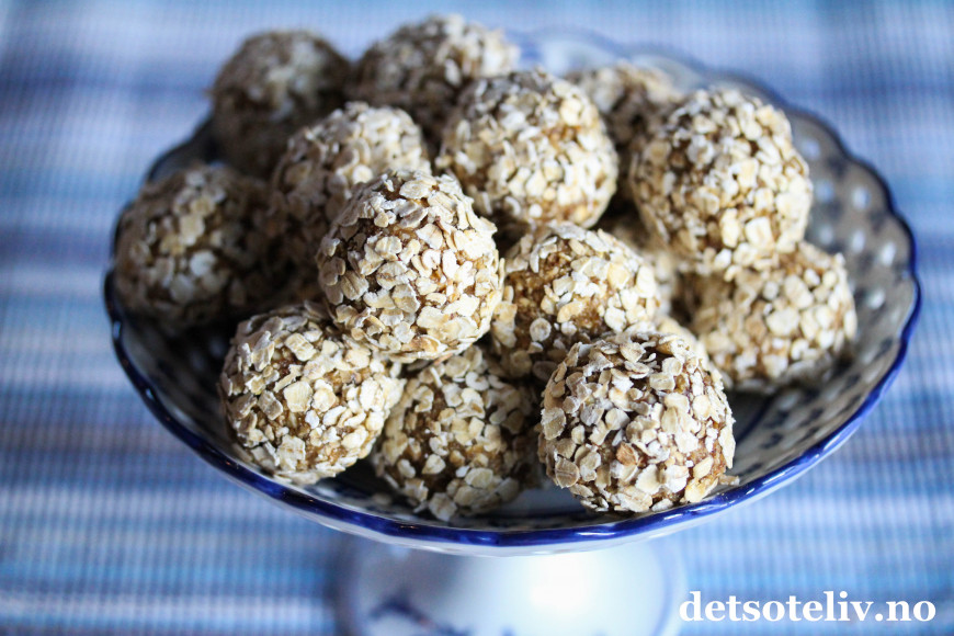 Form massen til runde kuler med hendene og rull dem i havregryn.