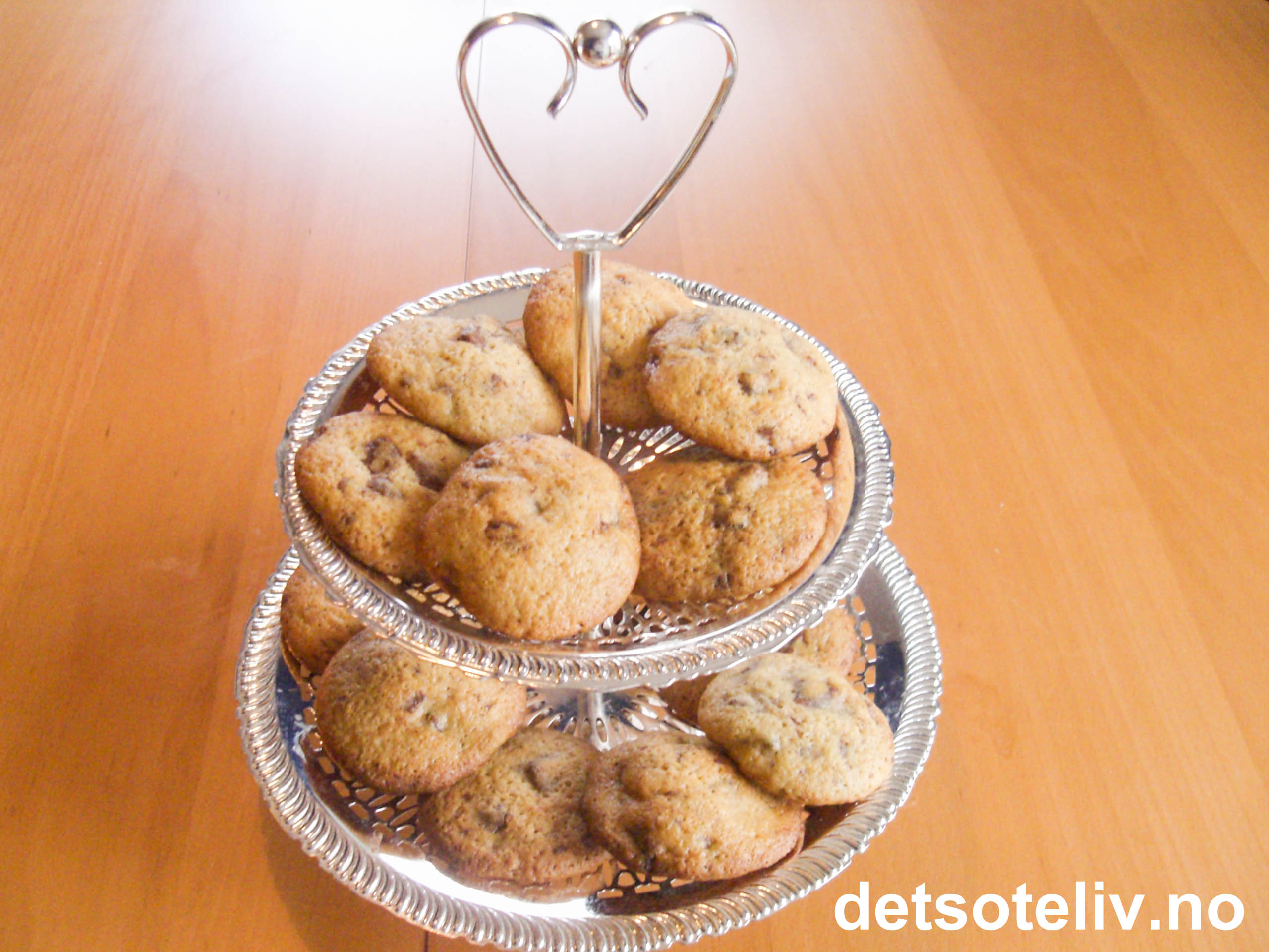 Stek kakene midt i ovnen ved 200°C i ca 10 min, eller til de er gyldne. Avkjøl kakene en stund på platen før de forsiktig flyttes over på rist med en stekespade og avkjøles helt.