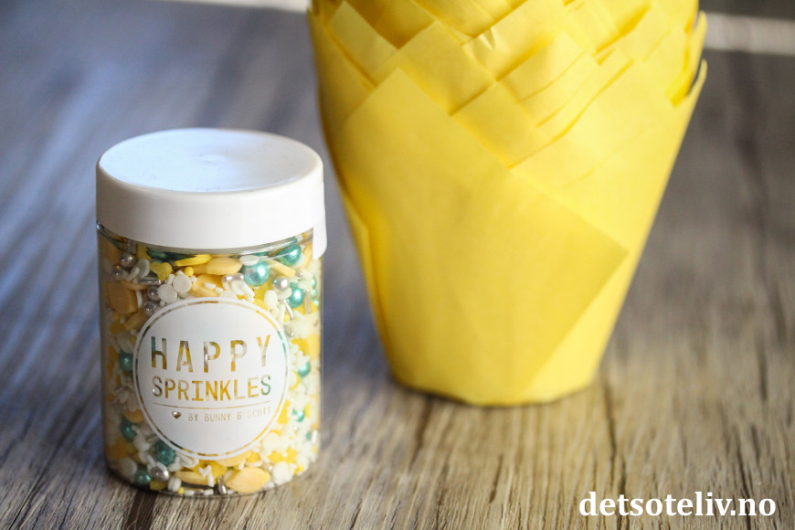 ♥ Kakestrøsselet jeg har brukt er fra superpopulære Happy Sprinkles, se strøsselet som heter Lemon Pie HER og Banana Split HER, og finnes i mange flere varianter, se alle samlet HER.