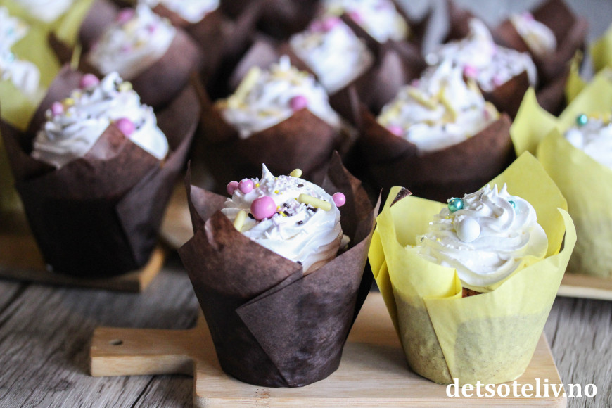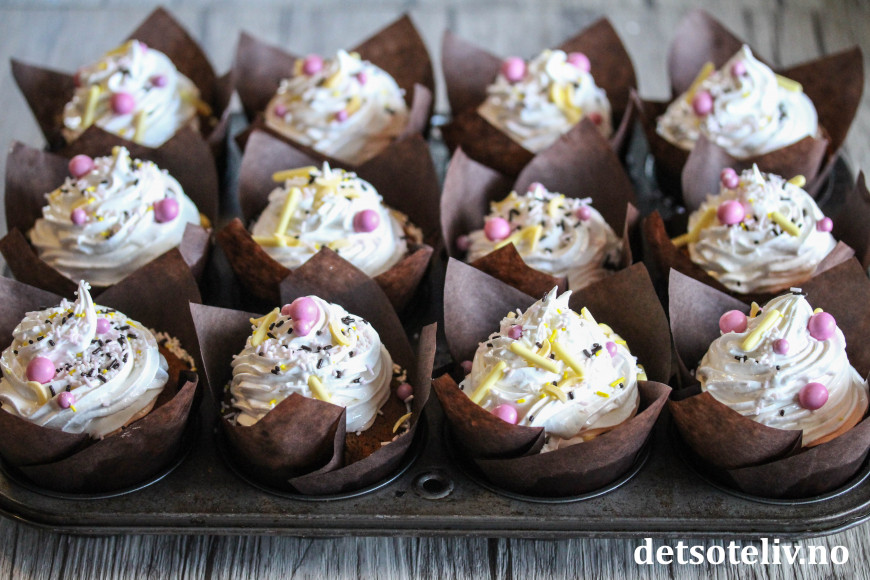 Synes du det blir mye med 24 cupcakes, er det bare å halvere oppskriften. 😉