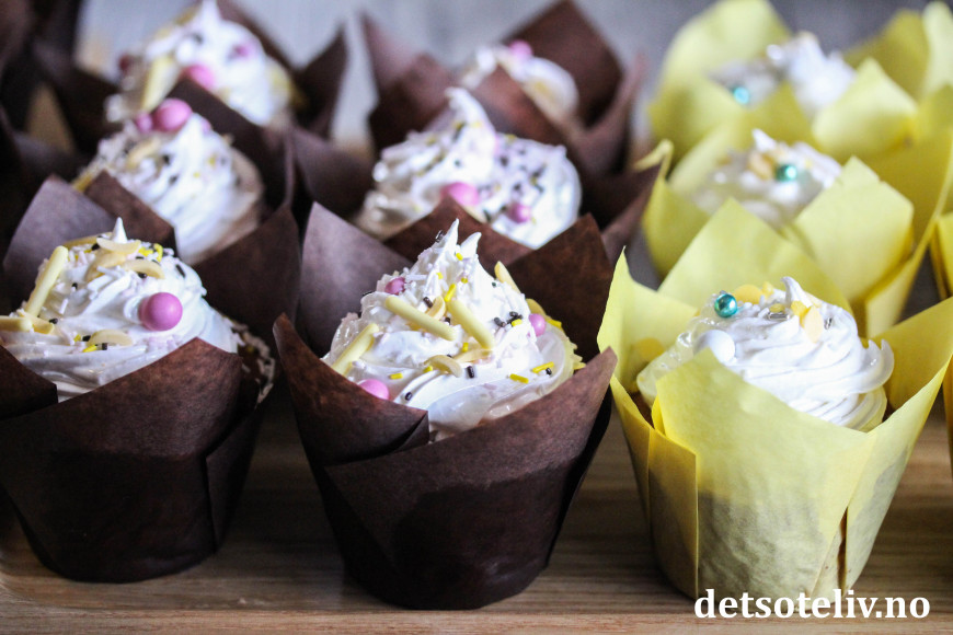 På toppen dekket jeg muffinsene med en fantastisk deilig marengskrem. 😍