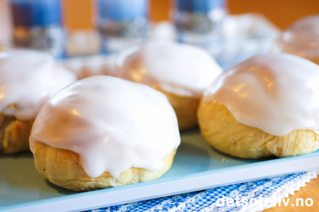 Jeg har her brukt en av mine absolutte yndlingsoppskrifter på Verdens beste boller. Dette er helt spesielt luftige og myke hveteboller, som jeg her har fylt med deilig kransekakemasse. Det gir nydelig marsipanaktig mandelsmak på bollene. På toppen har jeg glasert bollene med melisglasur tilsatt littegran rom.