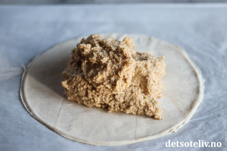 Ha mandeldeigen på den ene butterdeigssirkelen.
