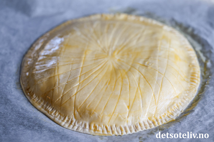 ♥ En autentisk Galette des rois skal som sagt ha en liten porselensfigur innbakt. Du kan alternativt bruke en liten mynt som er pakket inn i aluminiumsfolie. Det går også fint å bruke en hel, skåldet mandel.