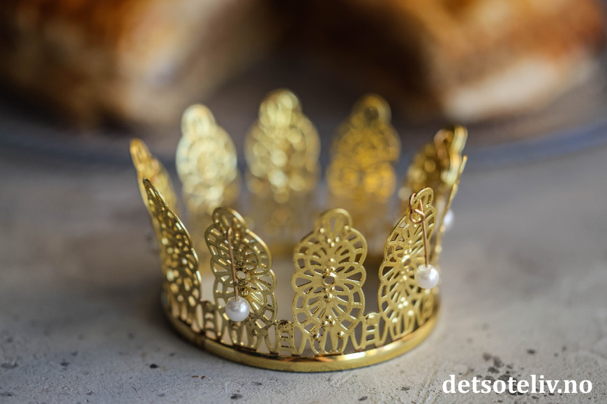 ♥ Kronen kjøpte jeg i en leketøysbutikk. Du kan i stedet klippe til din egen, hjemmelagde krone med gullfarget papp.