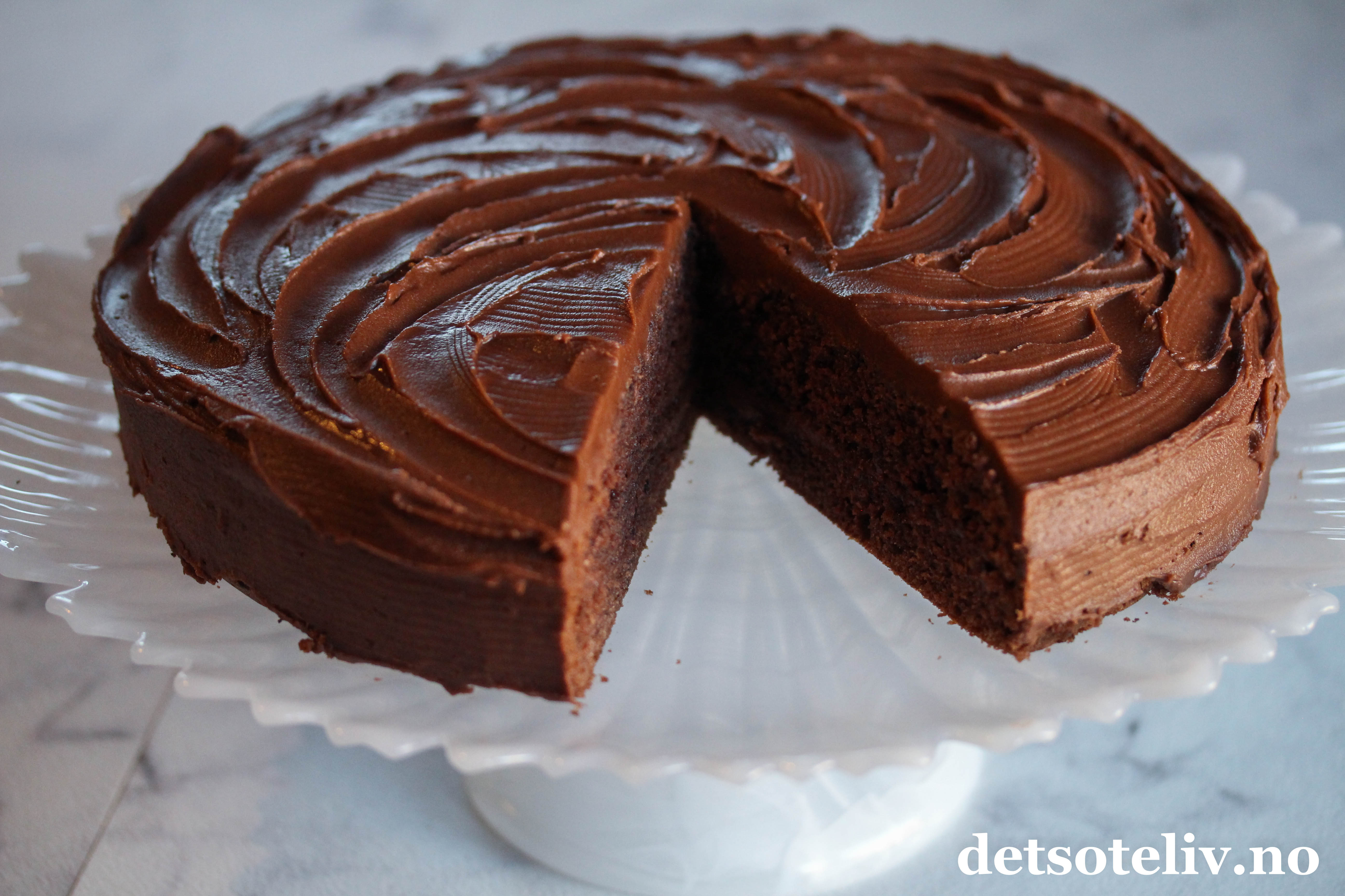 Her har du en skikkelig klassisk sjokoladekake; myk og saftig og fylt med en kjempegod sjokoladekrem!