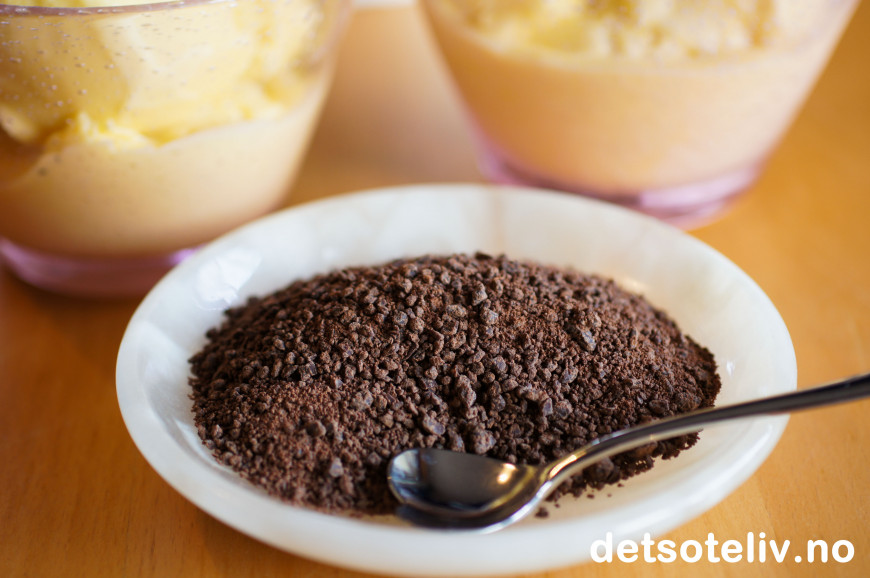 Hent frem to teskjeer og en skål til å ha revet sjokolade på..