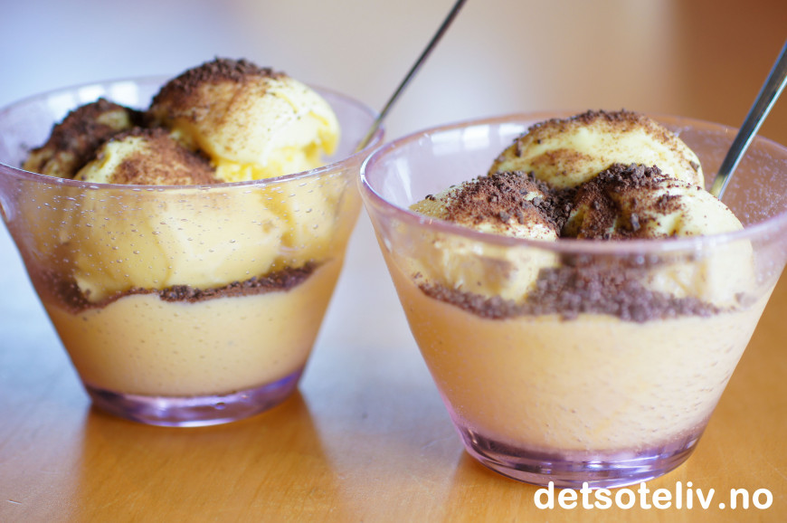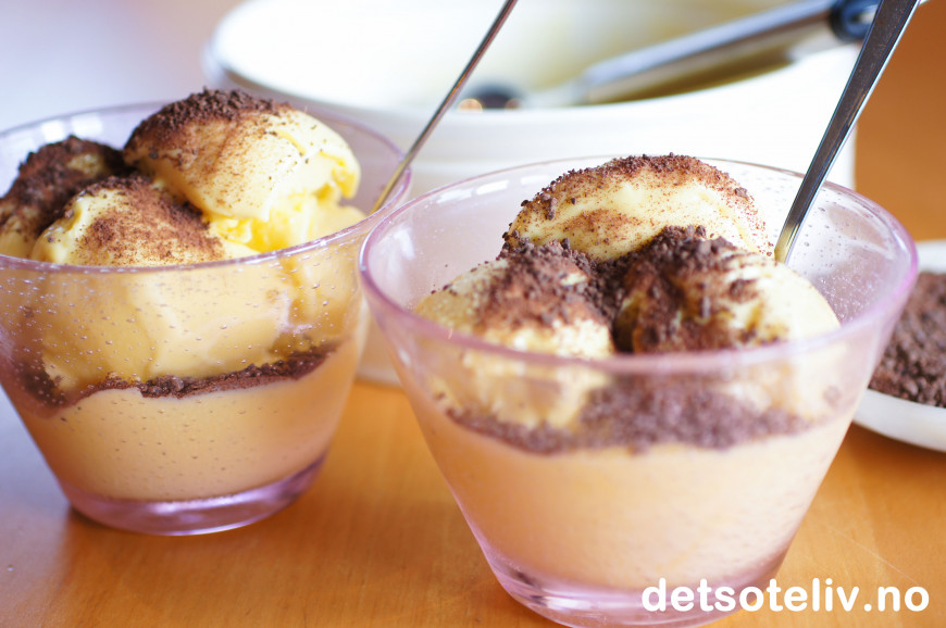 Isen er like god enten du serverer den som den er eller med et dryss revet sjokolade.
