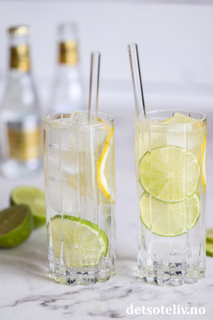 ♥ I dette innlegget har jeg laget en Klassisk Gin tonic, men Gin tonic er en drink som er populær å variere på flere måter. Blant annet finnes det smaksatt tonic som man kan bruke, og så kan man samtidig bytte ut sitron/lime med for eksempel grapefrukt, agurk, rosmarin osv. for å matche smaken på tonicen.