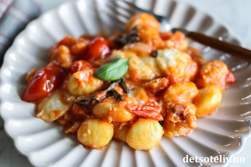 Gnocchi alla sorrentina er en italiensk klassiker! Som navnet tilsier ("alla sorrentina") kommer denne retten fra vakre Sorrento, som ligger i nærheten av Amalfikysten og Napoli.